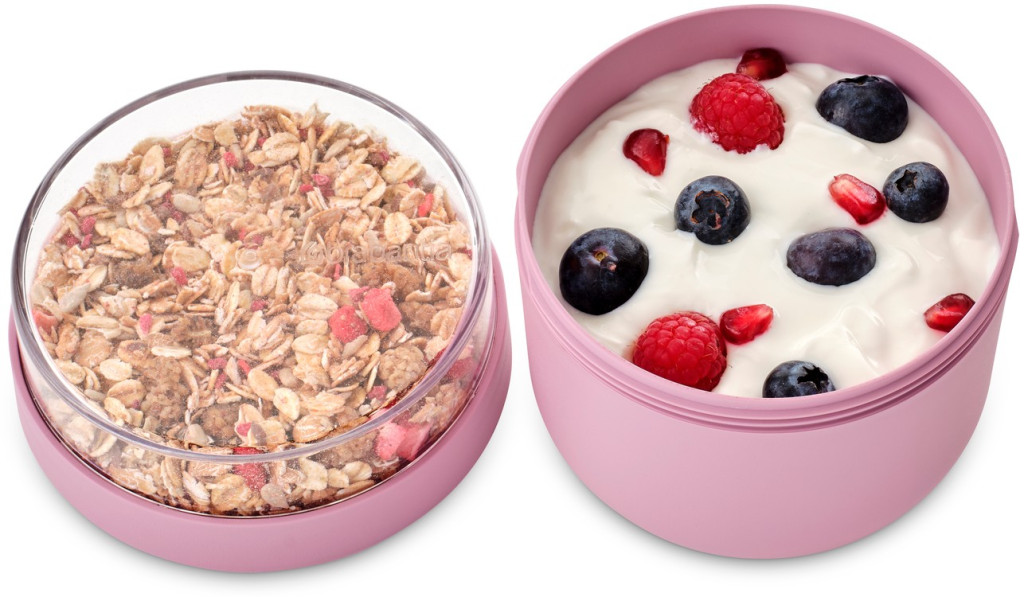 Brabantia Make & Take Breakfast Bowl utazó reggeliző csésze müzli tároló fedővel 0,5L, műanyag, rózsaszín-lila