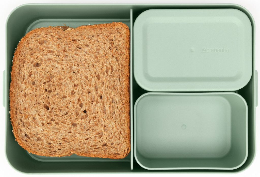 A Brabantia Make & Take Bento nagy méretű ételhordozója olyan befektetés, amely nap mint nap megtérül. A megbízható minőség, a gondosan átgondolt funkciók és a természetközeli esztétika olyan kombinációt alkot, amely hosszú távon támogatja egészséges életmódját és környezettudatos döntéseit. A jáde zöld árnyalat minden nap emlékezteti a természet egyensúlyára és arra, hogy a tudatos választások milyen pozitív hatással lehetnek életminőségére.