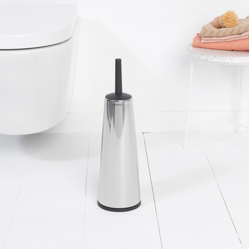 A Brabantia ReNew pipere termékcsalád filozófiája, hogy a fürdőszoba ne csupán funkcionális tér legyen, hanem a napi megújulás és felfrissülés szentélye. A kollekció minimális vonalvezetése és kifinomult dizájnja révén minden elem harmonikusan illeszkedik egymáshoz, lehetőséget teremtve egy egységes, nyugodt környezet kialakítására. A termékcsalád tagjai – a szappanadagolótól a fürdőszobai tárolókig – mind ugyanazt a design nyelvezetet beszélik, így a WC-kefe tartó tökéletesen kiegészíthető a többi ReNew termékkel.
