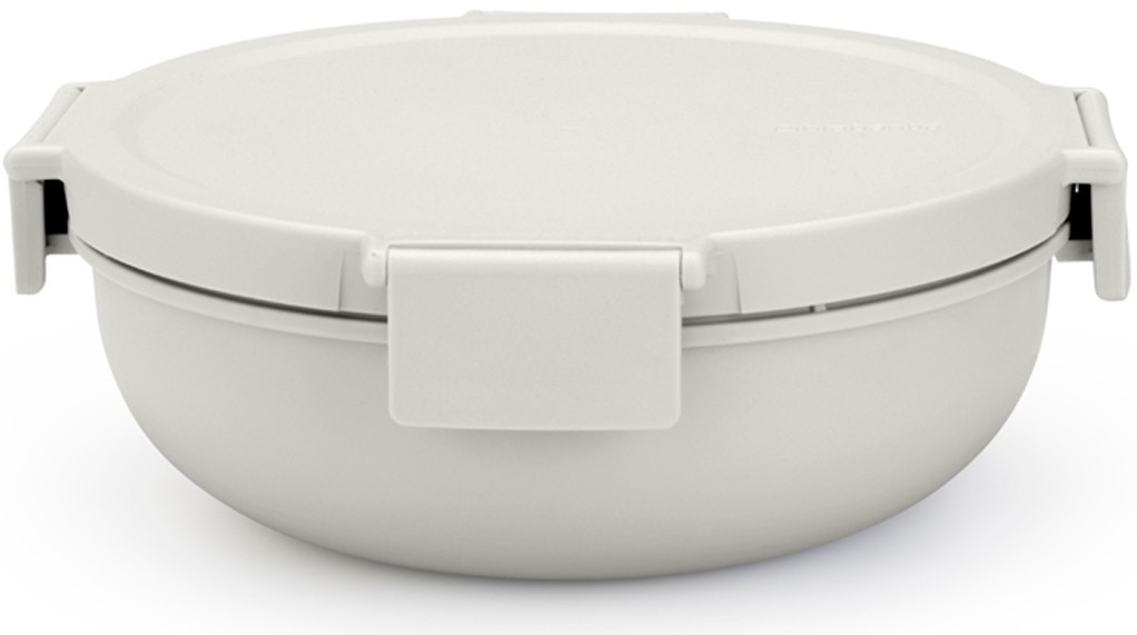 A világosszürke Brabantia Make & Take Salad Bowl olyan ételhordó megoldás, amely a modern életstílus igényeire szabva született. Az 1,3 literes kapacitású tál nemcsak praktikus társa a hétköznapoknak, de stílusos kiegészítője is minden táskának, hátizsáknak. A letisztult, világos árnyalat olyan légies eleganciát kölcsönöz a terméknek, amely harmonizál a kortárs konyhák esztétikájával és a skandináv minimalista designt kedvelők értékrendjével.