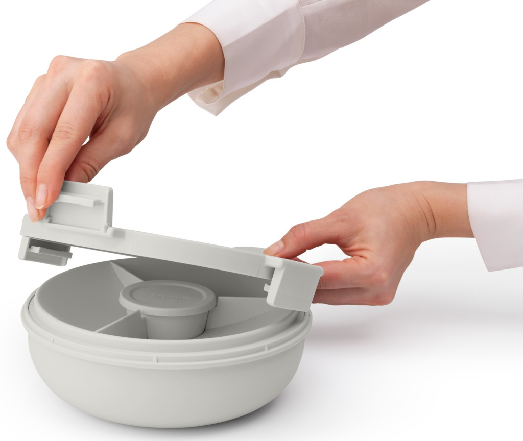 A termék minden részlete azt a célt szolgálja, hogy a felhasználó élménye a lehető legjobb legyen. A szivárgásmentes zárástól kezdve a különálló öntet tartón át egészen a környezetbarát anyagválasztásig minden elem átgondolt és céltudatos. Ez a holisztikus megközelítés teszi a Brabantia termékeket kiemelkedővé a piacon, és ez az oka annak, hogy világszerte millióan választják őket.