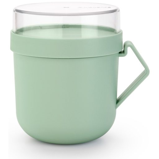 A Brabantia Make & Take Soup Mug olyan univerzális eszköz, amely alkalmazkodik az Ön életritmusához és szükségleteihez. Mikrohullámú sütőben történő használata lehetővé teszi, hogy munkahelyén vagy iskolában gyorsan felmelegítse ételét, így mindig frissen fogyaszthatja azt. A fagyasztóban való tárolás pedig azt jelenti, hogy előre elkészítheti ételeit akár egy hétre előre, így időt takaríthat meg a hétköznapok forgatagában.