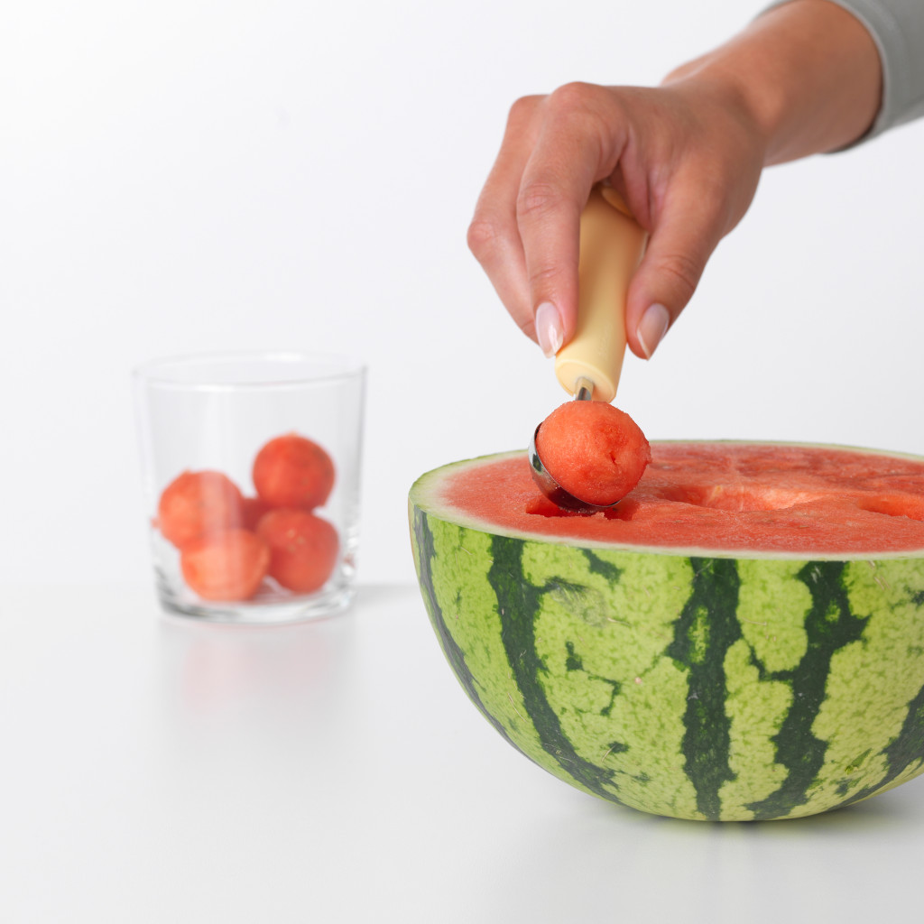 Ez a gyümölcsvájó a Brabantia Tasty+ termékcsalád harmonikus része, amely különböző színekben elérhető konyhai eszközöket foglal magában. A vaníliasárga árnyalat különösen azoknak ajánlott, akik konyhájukban a nyugalom és a lágy melegség atmoszféráját szeretnék megteremteni. A kollekció elemei vizuálisan összhangban állnak egymással, így a különböző eszközök együttes használata egységes, esztétikus megjelenést eredményez.