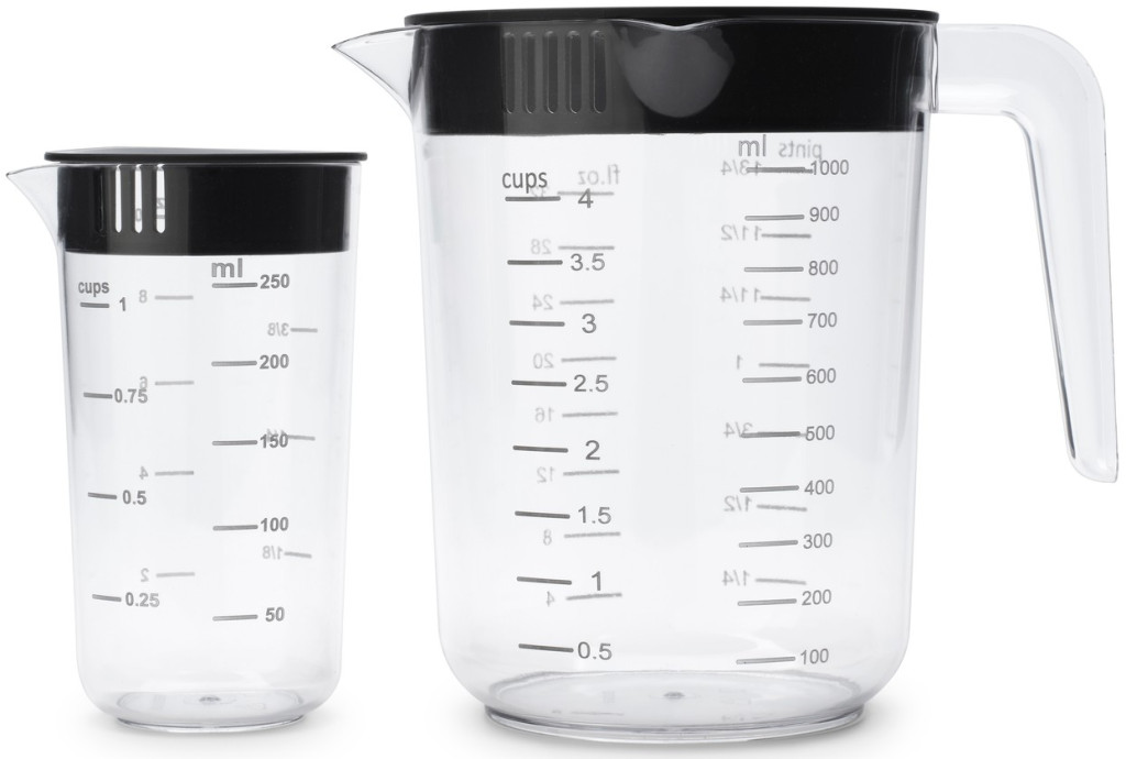 - Két kapacitás egy készletben: 0,5 literes és 1 literes mérőkancsók