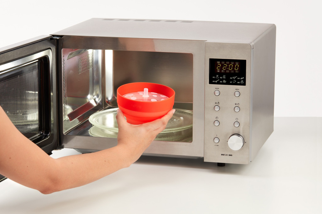 Lékué mini popcorn készítő, fedővel, 0,7L, összecsukható, szilikon, piros
