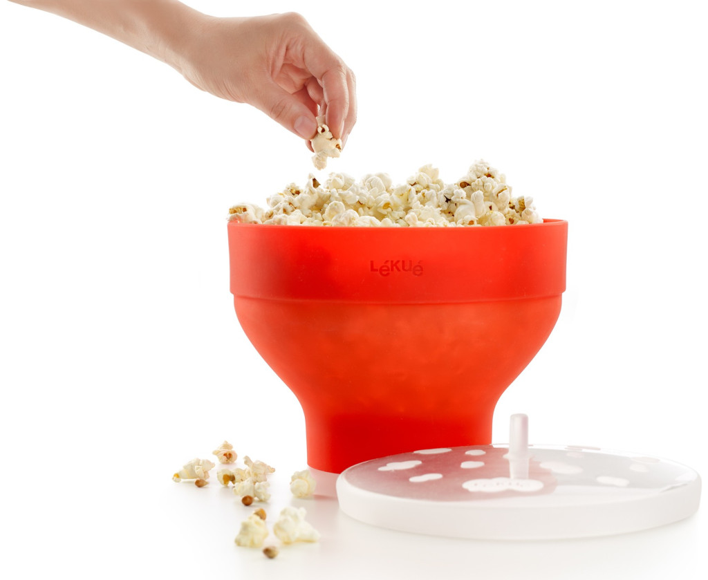 Lékué popcorn készítő, fedővel, 2,8L, szilikon, piros